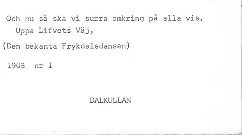 //// Och nu så ska vi surra omkring på alla vis, Uppa Lifvets Väj, //// (Den bekanta Frykdalsdansen) 1908 nr 1 //// DALKULLAN ////