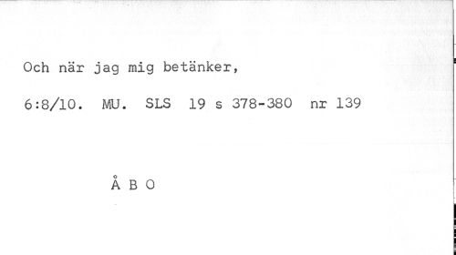 //// ¦ //// Och när jag mig betänker, //// 6:8/10. MU. SLS 19 s 378-380 nr 139 //// ÅBO //// i ////
