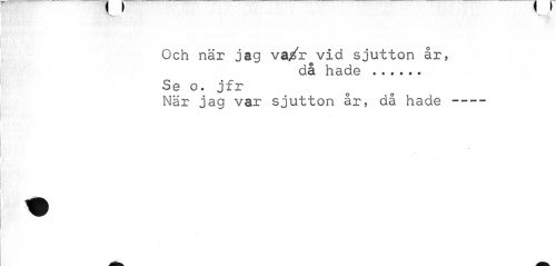 //// ___¦¦ //// Och när jag va/r vid sjutton år, //// då hade ... //// Se o. jfr //// När jag var sjutton år, då hade --- //// i ////