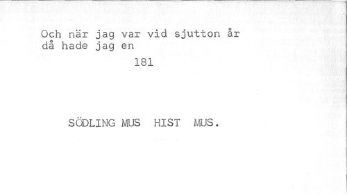 //// Och när jag var vid sjutton år då hade jag en //// 181 //// SODLING MUS HIST MUS. //// ¦ //// ¦ ////