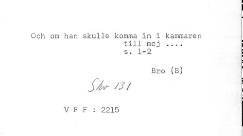 //// I //// I //// \ //// Och om han skulle komma in i kammaren //// till mej ... ! //// s. 1-2 \ //// ¦ //// ¦ //// Bro (B) f //// fdr /?/ ! //// V F F : 2215 ////