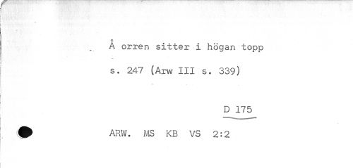 //// t~ ¦ 4 //// o //// A orren sitter i högan topp //// s. 247 (Arw III s. 339) //// ... . //// D 175 //// ^ ARV;. MS KB VS 2:2 ////