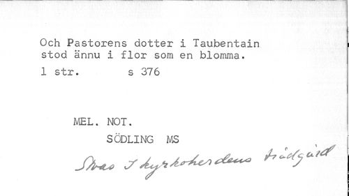 //// Och Pastorens dotter i Taubentain i //// stod ännu i flor som en blomma, //// 1 str. s 376 //// MEL. NOT. //// SODLING MS //// J)u* * - *> * ^ | ////