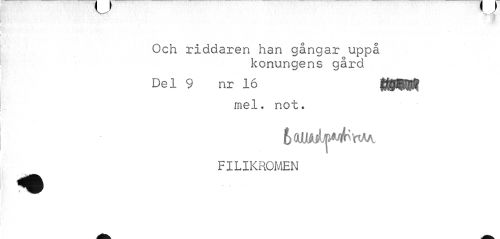 //// - ^ //// Och riddaren han gångar uppå //// konungens gård //// mel. not. FILIKROMEN //// m ////