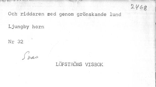 //// Och riddaren ©ed genom grönskande lund Ljungby horn //// Nr 32 //// J //// LÖFSTRÖMS VISBOK ////