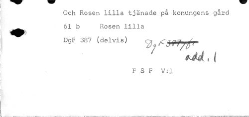 //// Och Rosen lilla tjänade på konungens gård ^^^ 61 b Rosen lilla //// DgF 387 (delvis) ^ /jfr //// F S F V: 1 ////