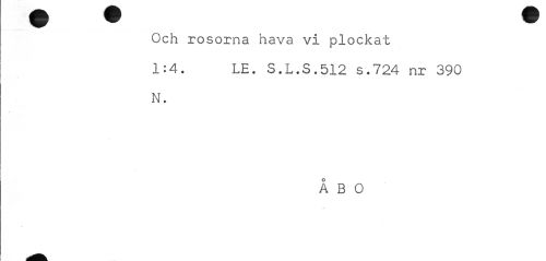 //// Och rosorna hava vi plockat //// 1:4. LE. S.L.S.512 s.724 nr 390 N. //// ÅBO ////