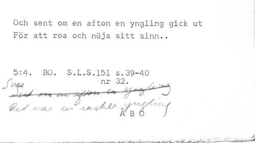 //// Och sent om en afton en yngling gick ut För att roa och nöja sitt sinn.. //// 5:4. BO. S.L.S.151 s.39-40 Cixu- nr 32. //// A B O //// M //// -- -- wi, • I <•«• ' Vf + fcr^T/fi • • , ¦ !.».« I^li III" iif Éfr " f ^ ~ i ___Al. ' ////