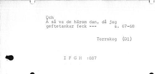 //// v //// Ocho //// A så va de härom dan, då jag //// geftetankar feck ---s. 67-68 //// Torrskog (Dl) ////