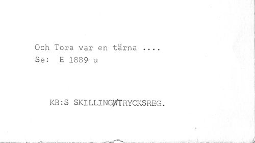 //// Och Tora var en tärna ... Se: E 1889 u //// KB: S SKIL LI NG]/fT RYCKS REG. //// » //// i.. xs. V ////