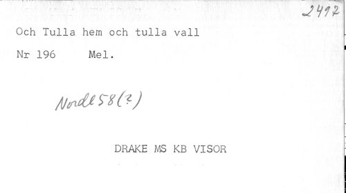 //// / : ¦.::: ' • Ull*- //// Och Tulla hem och tulla vall //// Nr 196 Mel. //// DRAKE MS KB VISOR ; ////