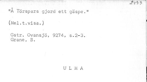 //// o //// !!A Törspars gjord ett gäspe.,r (Mel.t.visa.) //// Gstr. Ovansjö, 9274, s.2-3. Grane, B. //// U L M A ////