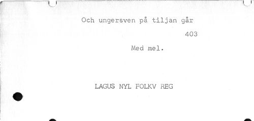 //// ¦ //// Och ungersven på tiljan går //// 403 //// Med mel. LAGUS NYL FOLKV REG ////