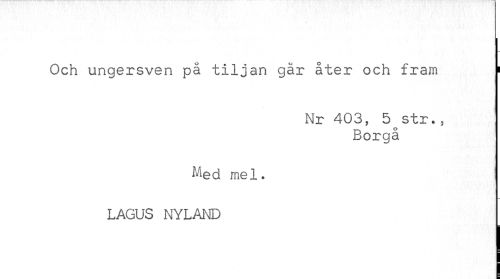 //// Och ungersven på tiljan går åter och fram « //// Nr 403, ö^str., //// Borgå //// Med mel. LAGUS NYLAND ////