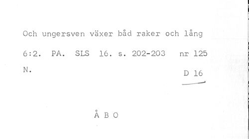 //// i //// Och ungersven växer båd raker och lång 6:2. PA. SLS 16. s. 202-203 nr 125 //// N- D 16 //// . ¦ //// ÅBO //// .i» ////