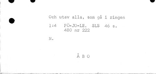 //// Och utav alla, som gå i ringen //// 1:4 FÖ-JO-LE. SLS 46 s. //// 480 nr 222 //// N. //// ÅBO //// \ //// . ___ ...w _ ___ ////