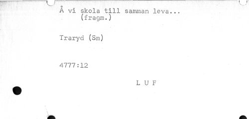 //// ^^ o //// A vi skola till samman leva... //// (fragm.) //// Traryd (Sm) 4777:12 //// L U F //// \ ////