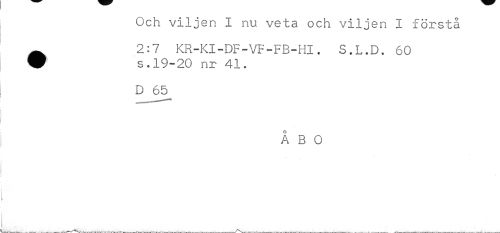 //// Och viljen I nu veta och viljen I -förstå //// 2:7 KR-KI-DF-VF-FB-HI. S.L.D. 60 W s.19-20 nr 41. //// D 65^ //// ÅBO //// -- - . - - - ---- ---_- _, ..-- - .---n___,___, .Wi.rvifc^jir ___ ___ ... _ _ ..___^ ////