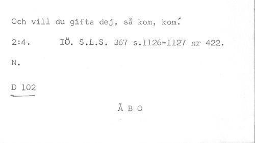 //// Och vill du gifta dej, så kom, korn.' //// 2:4. IÖ. S.L.S. 367 s.1126-1127 nr 422. //// N. //// D 102 //// ÅBO ////