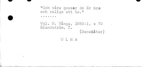 //// IfOch våra gossar de är bra och roliga att ha.!I //// Vgl v N. Vånga, 2850:1, s 70 Brandström, i. //// (DansMtar) //// U L M A //// » //// ^ ___^ ^ v Jfcti,,,-, j„-;,,, f„ , (, *___ . ___„ . __ _ ^__• __ _ ... . _ . - ___ ___ ////