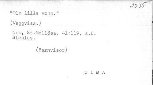 //// J3 • //// "Ole lilla vonn." //// ¦ //// (Vaggvisa.) : //// Nrk, St.Méllösa, 41:119, s.6. Stenius. //// (Barnvisor) //// •X //// U L M A ////