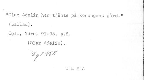 //// i //// u01er Adelin han tjänte på konungens gård." (ballad). , //// Ögl., Ydre, 91:33, s.8. //// ¦ //// i I //// (Olar Adelin). ' //// i //// % a rf sr* \ //// U L M A ////