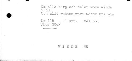 //// Om alla berg och dalar wore wända i gull //// ^^ Och allt watten wore wändt uti win //// Nr 115 1 str. Mel not /DgF 306/ //// % //// Vi/ I E D E MS //// . ... t .-V i ' //// ___.___JriLikiÄkL.- - ^ - ¦ ...- ---^ A--- ////