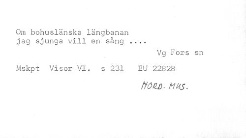 //// Om bohuslänska längbanan jag sjunga vill en sång ? //// Vg Fors sn Mskpt Visor VI. s 231 EU 22828 //// ttö£D- MUS. ////