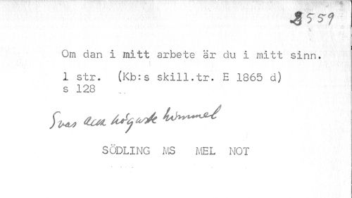 //// sr //// Om dan i mitt arbete är du i mitt sinn. //// ? //// 1 str. (Kb:s skill.tr. E 1865 d) s 123 //// SÖDLING MS MEL NOT //// r v. . . ////