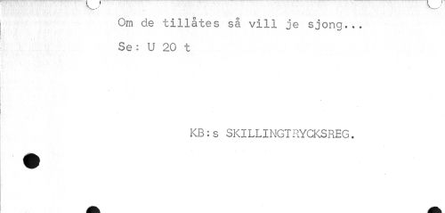 //// Orn de tillätes så vill je sjöng... //// Se: U 20 t //// KB:s SKILLINGT RYCKSREG. ////