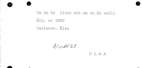 //// Om du är liten och om du är snäll Äng. nr 3852 Carlsson, Elsa //// U L M A ////