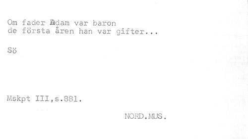 //// Om fader Ödam var baron de första.åren han var gifter... //// Sö //// Mskpt III,s.881. //// NORD. MUS. ////