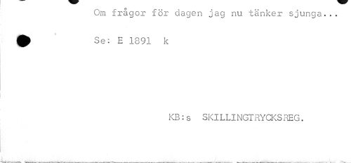 //// Om frågor för dagen jag nu tänker sjunga... ^ Se: E 1891 k //// KB:s SKILLINGTRYCKSREG. ////