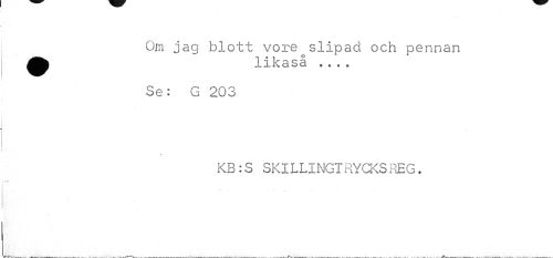//// Om jag blott voreoslipad och pennan //// 1 i k Q S 3 • i • • //// Se: G 203 //// KB:S SKILLINGTRYCKSREG. ////