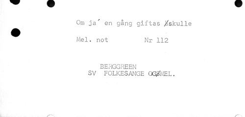 //// Om ja' en gång giftas /skulle Mel. not Nr 112 //// BERGGREEN SV FOLKESANGE QG^MEL. ////