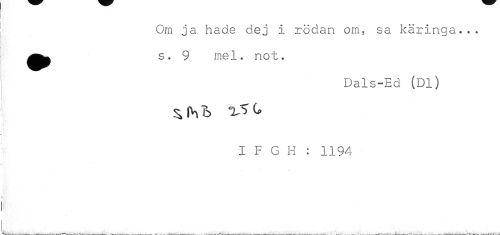 //// Om ja hade dej i rödan om, sa käringa... ^^ s. 9 mel. not. //// Dals-Ed (Dl) I F G H : 1194 ////