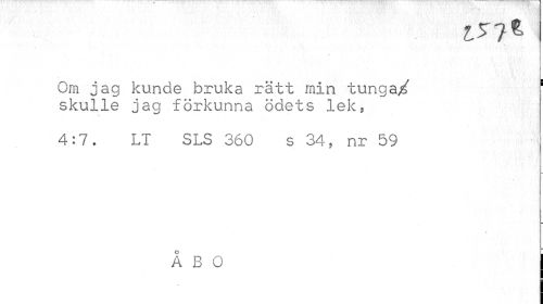 //// Om jag kunde bruka rätt min tunga/ s //// skulle jag förkunna ödets lek, //// v» ¦ //// 4:7. LT SLS 360 s 34, nr 59 //// ÅBO ////