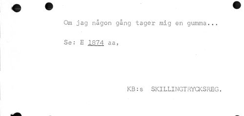//// Om jag någon gång tager mig en gumma... Se: E 1674 aa, //// « //// KB:s SKlLLINGTRYCKSREG. ////
