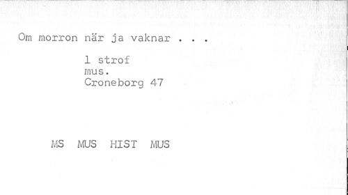 //// '. •. , J si' //// : //// ' V ' 1 //// Om morron när ja vaknar • * . //// 1 strof mus. //// Croneborg 47 MS MUS Hl ST MUS ////