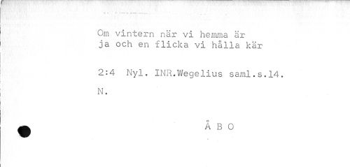 //// RuHn' •» * ^ fy -^ ' //// Om.vintern när vi hemma är ja och en flicka vi hålla kär //// 2:4 Nyl. INR.Wegelius saml.s.14. N. //// ^ ÅBO ////
