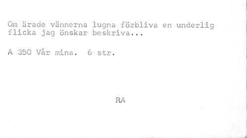 //// Om ärade vännerna lugna förbliva en underlig flicka jag önskar beskriva... //// A 350 Vår mina. 6 str. //// RA //// . rl ////