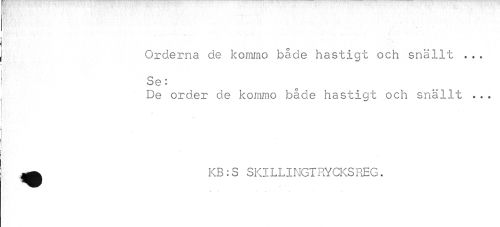 //// Orderna de kommo både hastigt och snällt .. //// Se: //// De order de kommo både hastigt och snällt . Ä KB:S SKILL1NGTRYCKS REG. //// »v ... .. • ////