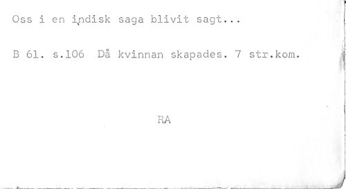 //// Oss i en isndisk saga blivit sagt... //// i; //// B 61. s.106 Då kvinnan skapades. 7 str.kom. j //// RA //// | //// • , J ////