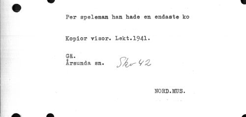 //// Per speleman han hade en endaste ko Kopior visor. Lekt.1941* //// irsunda sn. 7 //// NOBD.MUS. //// ^ ^ åk ik ^ ////