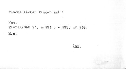 //// Plocka låckar finger små ! Net. //// 2:oreg.SLS 24, s.394 b - 395, nr.239- //// M. a. //// ÅBO. //// låtäjM&äii - ii --' ////