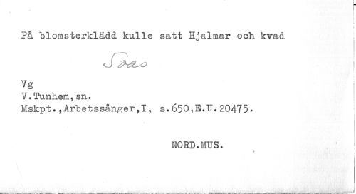 //// I i i I //// r //// På blomsterklädd kulle satt Hjalmar och kvad j //// J ^^o I //// Vg //// V.Tunhem.sn. //// Mskpt.,Arbetssånger,I, s.650,E.U.20475• //// HORD.MUS. //// . I ^ , ¦ I,., urttfrn ät r~ ¦ -•' - **- --¦¦ -ihlfiiii V. ' r åLmk • • iA A.* . . ^ | ¦ .gg. ' 'r^vilu^.ii"-' •- ////