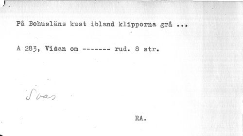 //// På Bohusläns kust ibland klipporna grå ..• //// * //// A 283, Visan om---rud. 8 str. //// d O-a-o //// RA. ////