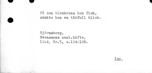 //// På. den blomkrans han fick, ^^ sänkte han en tårfull blick. //// Björneborg, Svenssons saml.häfte, 12:4? Nr.5, s.124-126. //// ÅBO. ////