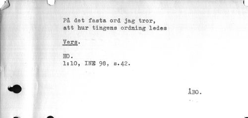 //// ^fl^Pp^P • "'i'*' ' . j. 1-.V*.'' y ^ !. ?: i •• ? . v-4' ' . 'i ,.4 l, * //// På det fasta ord jag tror, att hur tingens ordning ledes //// Vers. //// HO. //// 1:10, INE 98, s.42. //// t*. ^ //// jv, ////