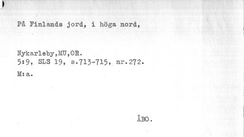 //// På Finlands jord, i höga nord, //// r //// Nykarleby,MU,OB. //// 5:9, SLS 19, s.713-715, nr.272. j //// ; t //// M: a. //// i //// i i //// 1 f //// , i //// ÅBO. ////